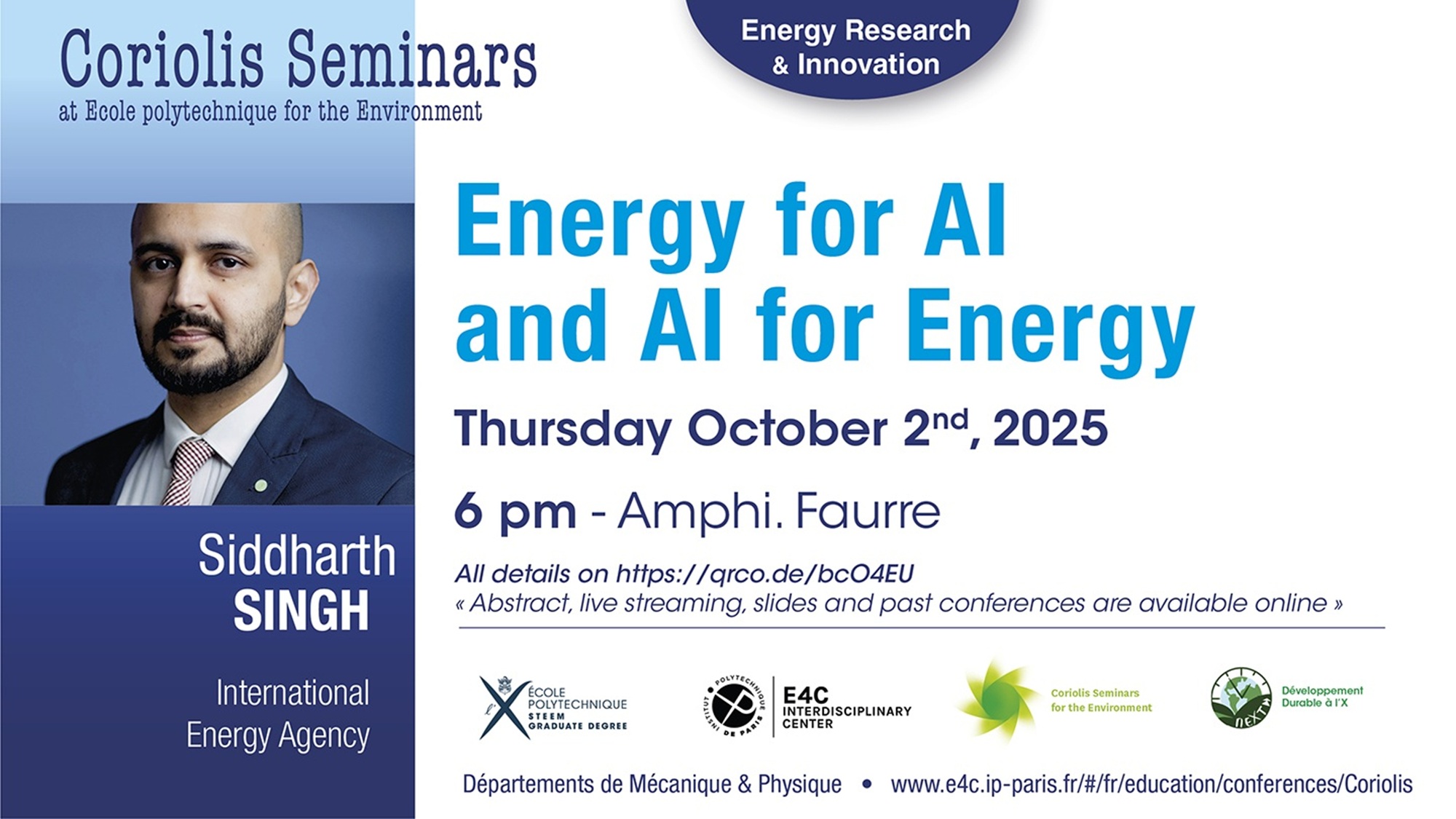 Coriolis Seminar - Energy for AI and AI for Energy